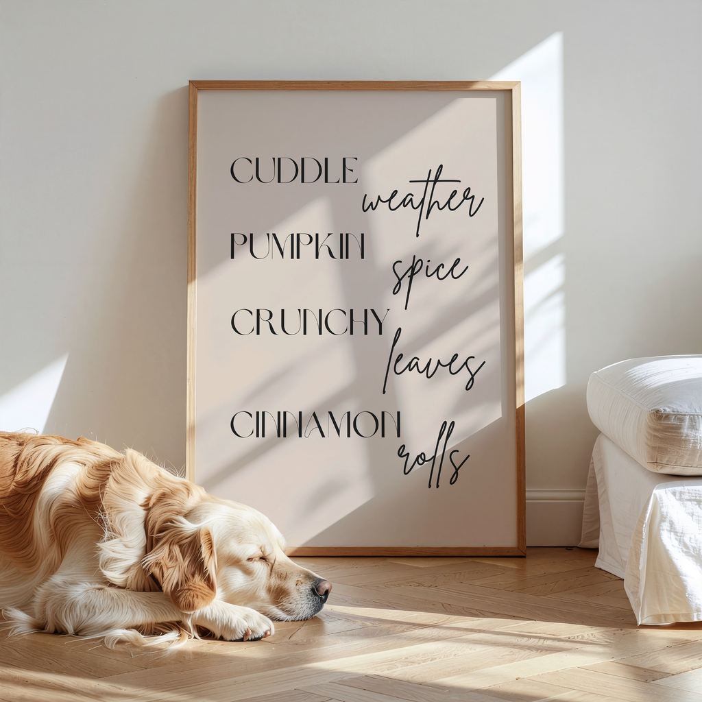 Das Hundeposter ist mein Favorit! Jeder, der zu Besuch kommt, muss lachen – und ja, mein Hund hat es natürlich auch abgesegnet.