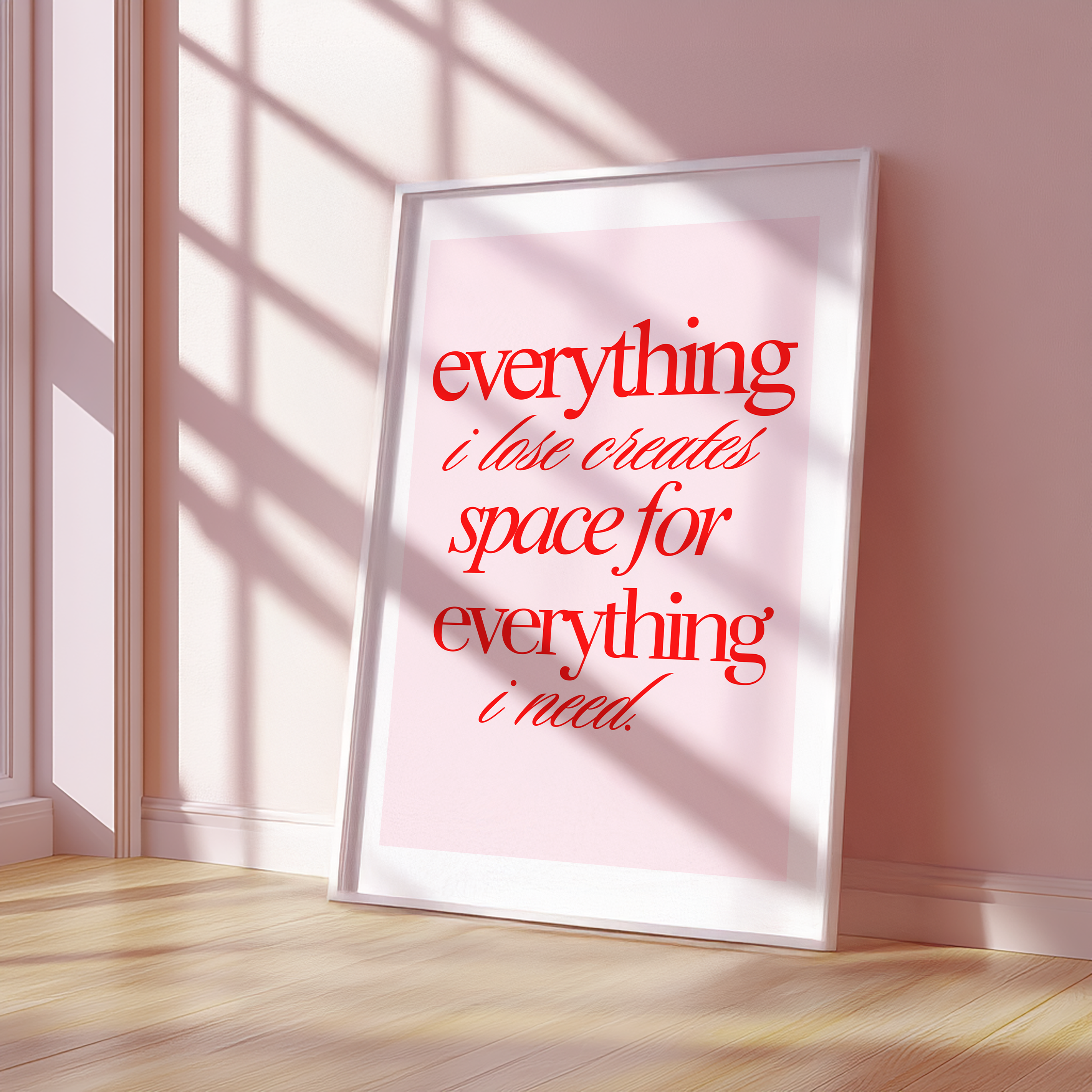 Die Botschaft: „everything i lose creates space for everything i need.“ ist eine Affirmation für Vertrauen, inneren Frieden und manifestierende Energie.