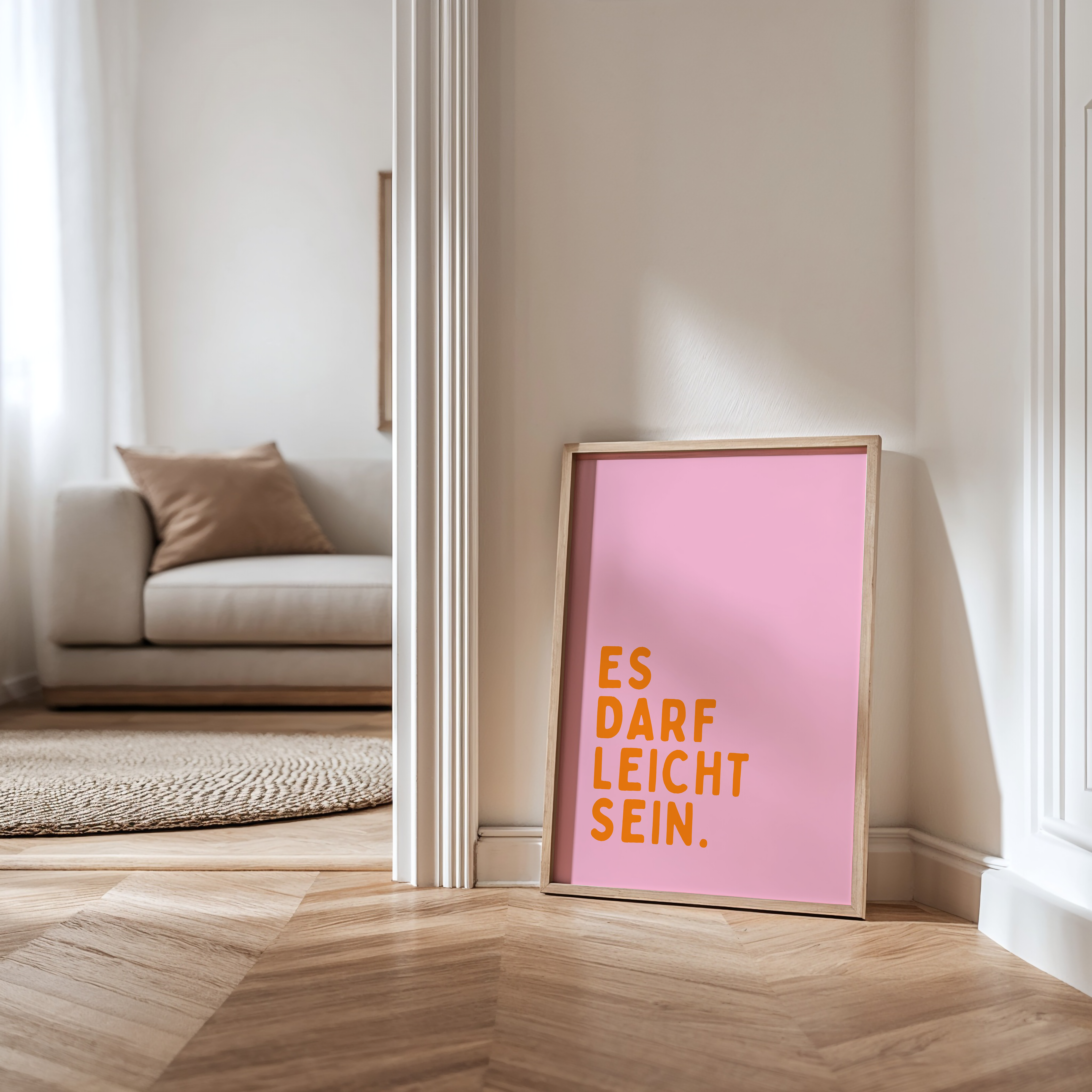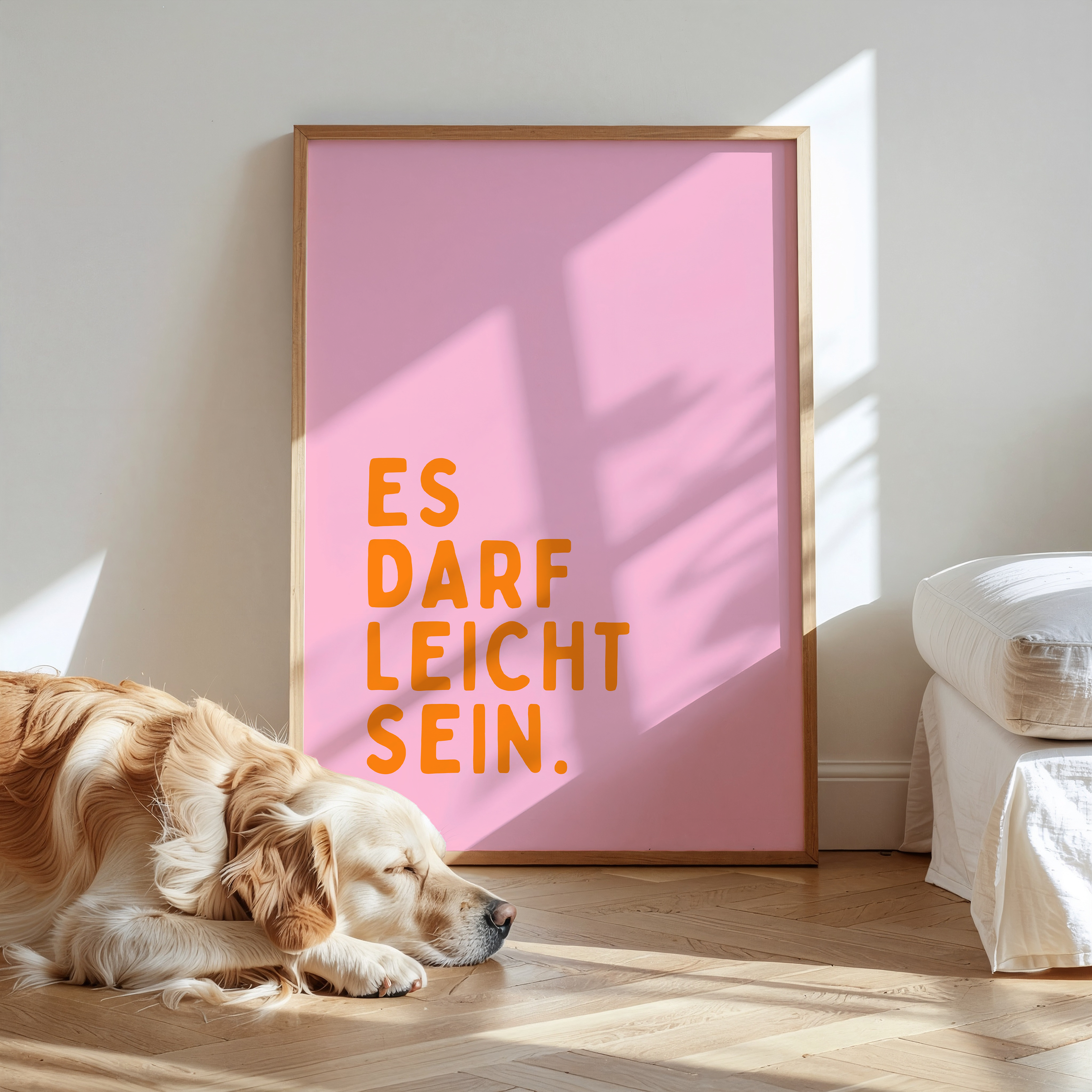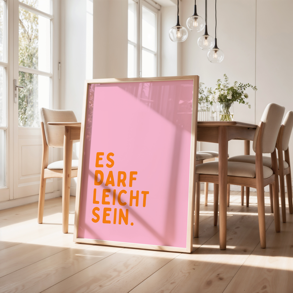Dieses stilvolle Poster mit dem kraftvollen Statement „ES DARF LEICHT SEIN.“ erinnert dich täglich daran, dass das Leben nicht immer schwer sein muss. Es darf leicht, fließend und voller Vertrauen sein.
