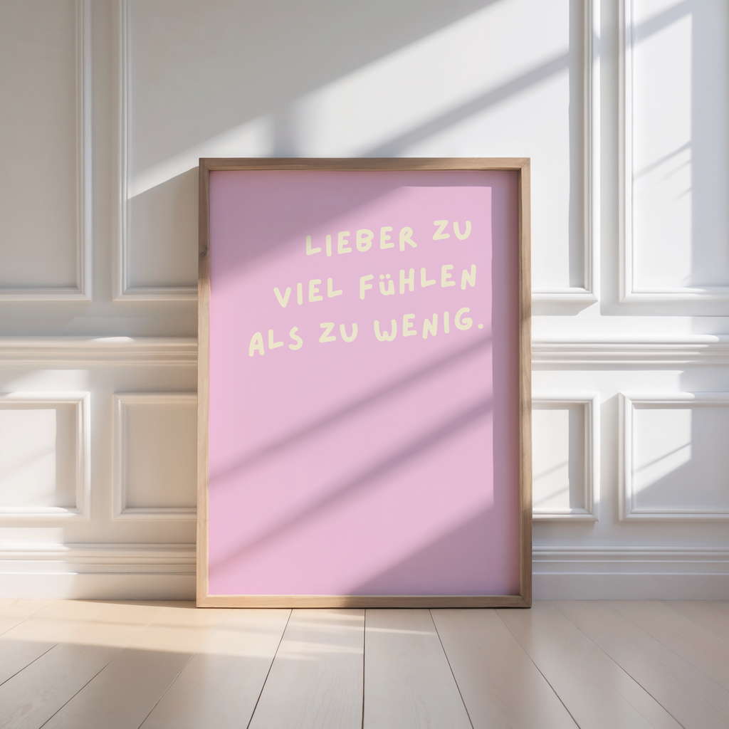 Poster „Lieber zu viel fühlen als zu wenig.“