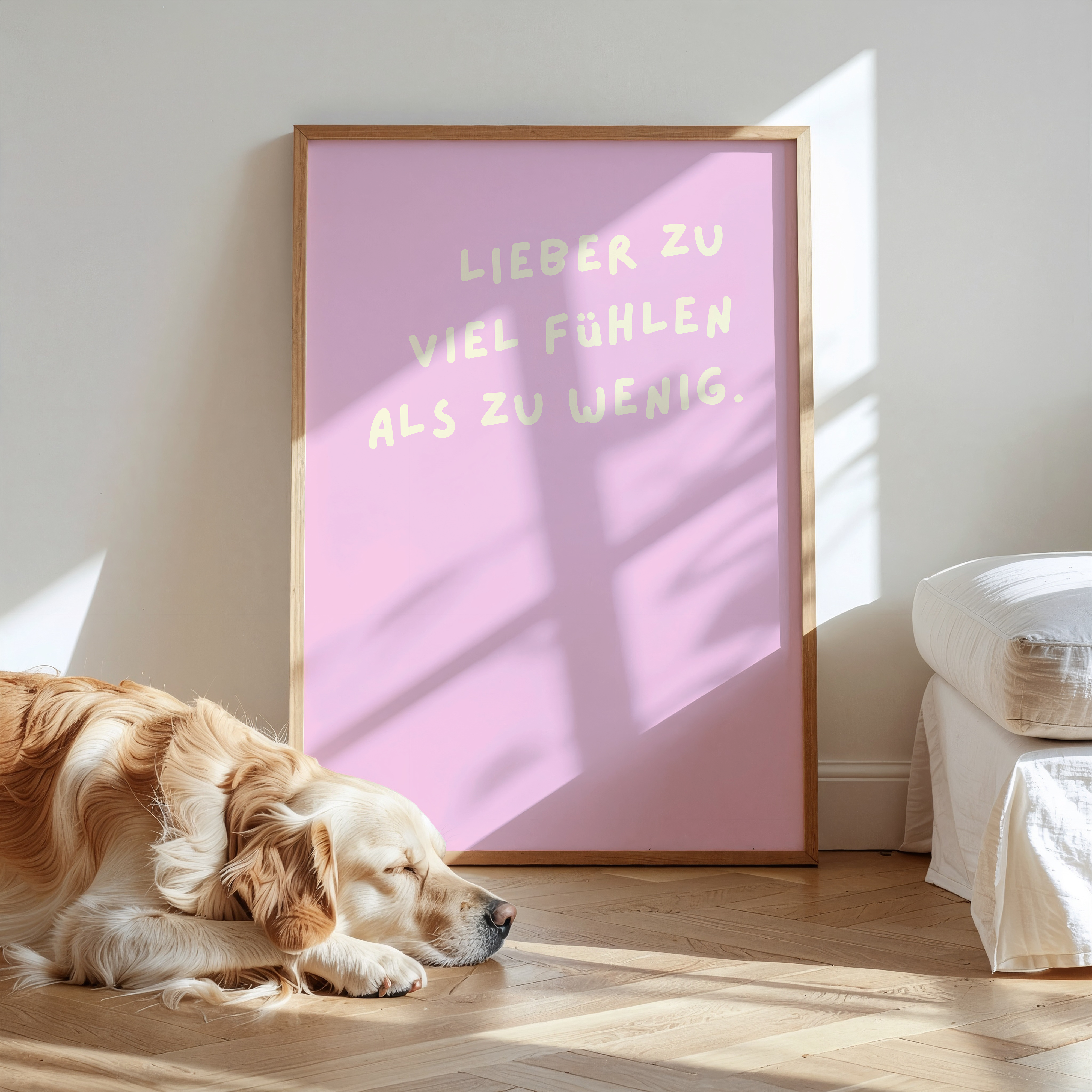 Der sanfte Pastellton und die klare Typografie bringen Ruhe und Wärme in jeden Raum – perfekt, um dein Zuhause mit ein bisschen Herz und Achtsamkeit zu füllen.