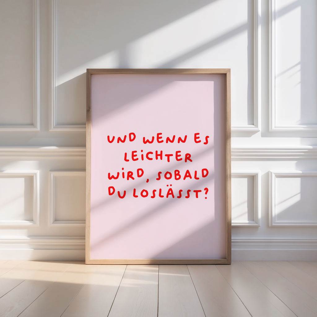 Dieses Poster ist eine sanfte Einladung, das Schwere hinter dir zu lassen und Vertrauen ins Leben zu fassen. Die klare Botschaft erinnert dich daran, dass Loslassen oft der erste Schritt zu mehr Leichtigkeit ist.