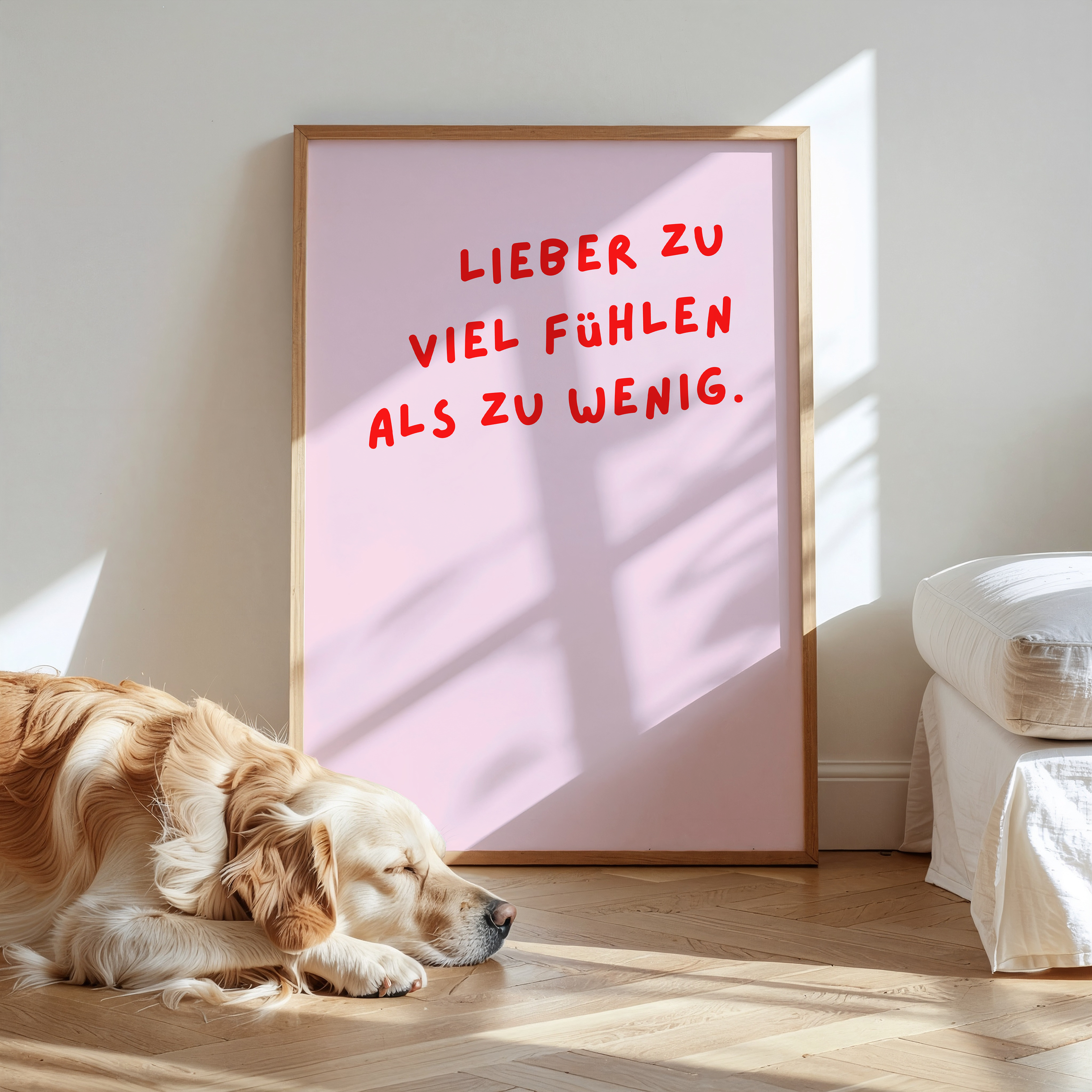 Der sanfte Pastellton und die klare Typografie bringen Ruhe und Wärme in jeden Raum – perfekt, um dein Zuhause mit ein bisschen Herz und Achtsamkeit zu füllen.